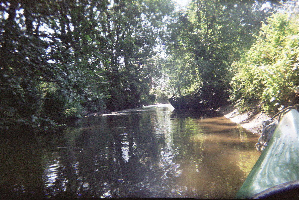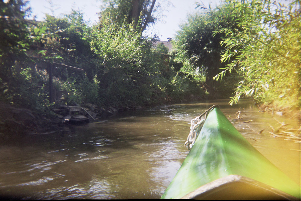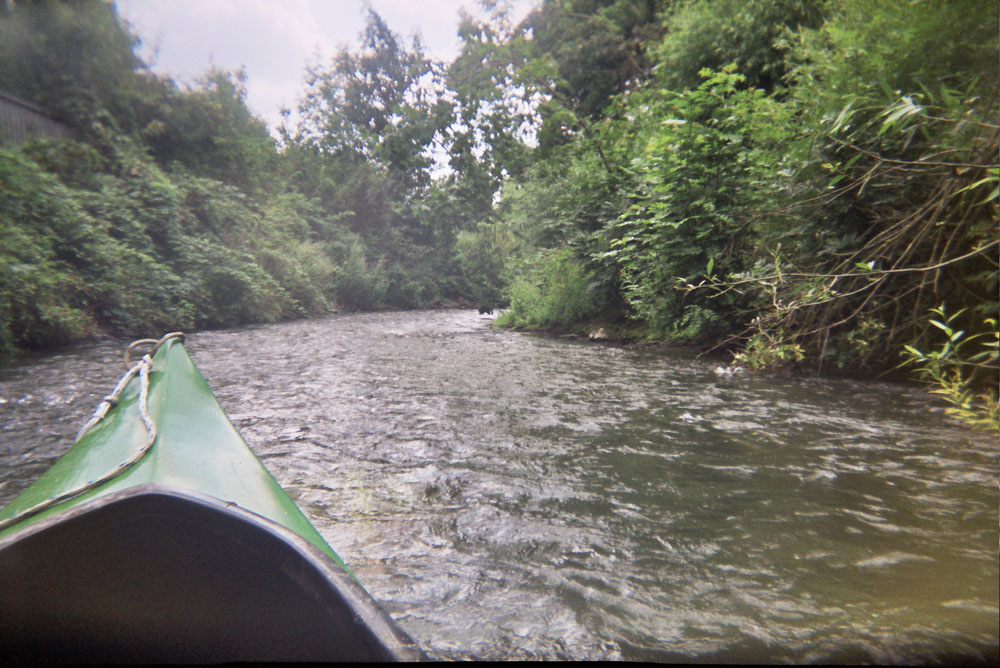 Das Wasser war zu trüb, um etwas erkennen zu können. Dessen Bugwelle allerdings war breit, nicht spitz, woraus Michael messerscharf auf das breite Maul eines Welses schloß. Seit diesem Tag bin ich nie wieder Kanu gefahren.